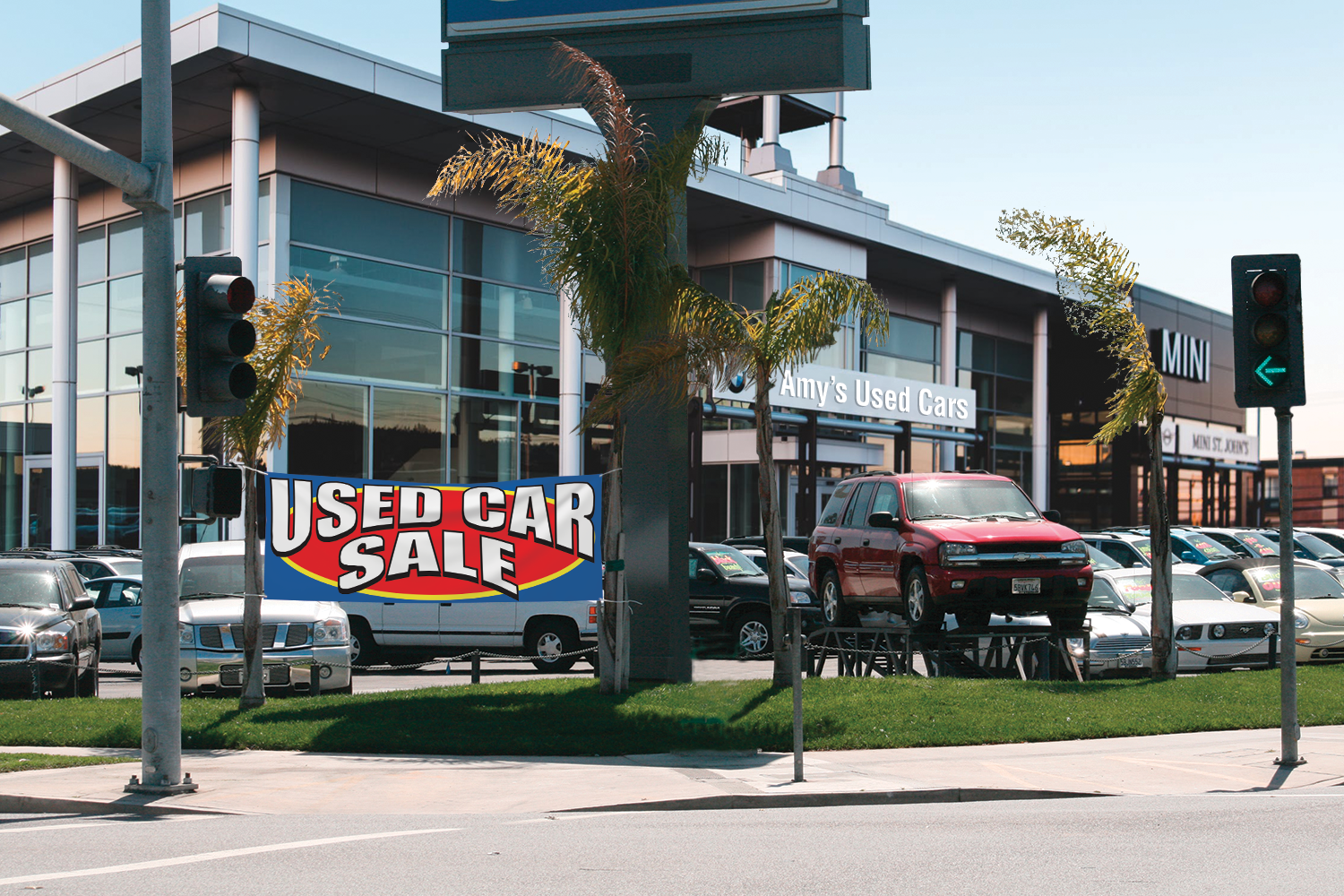 Vizi™ Windshield Banners are perfect to grab the attention of your customers. These eye-catching banners are easy to install for display, and easy to remove for a test drive. Each banner is made of a heavy-duty reusable vinyl, and is reinforced for maximum durability. Just use the bungee cords to attach your banner to each of the side mirrors and you’re good to go!