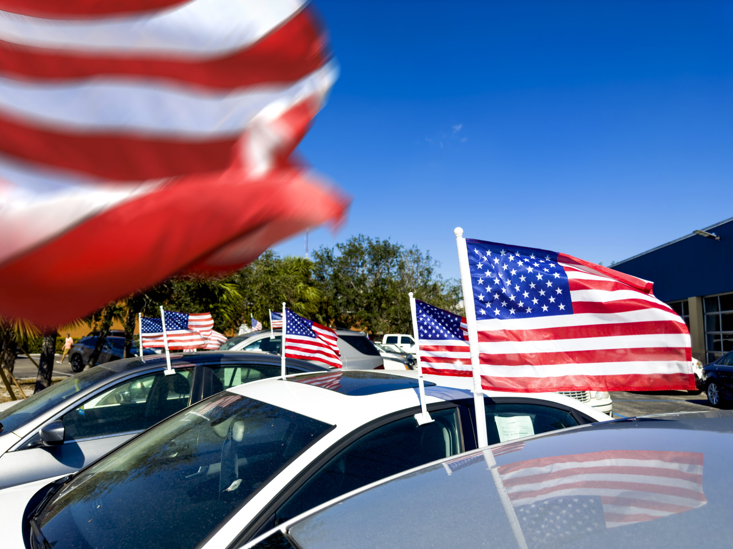 U.S. Flags are a great way to grab your customer’s attention and show your patriotism. All of our US Flags are made in the United States with high-quality nylon material. Each flag contains 2 brass grommets, and our premium flags have embroidered stars and sewn stripes.