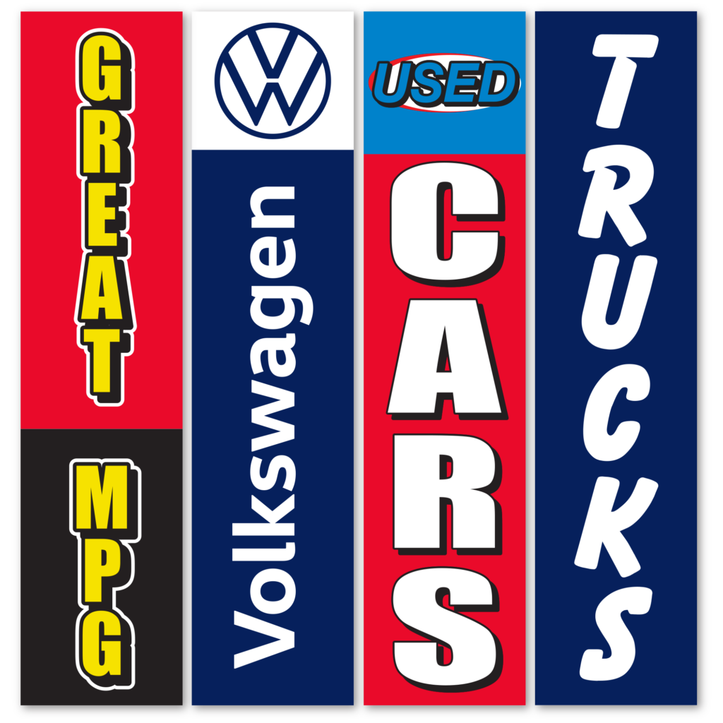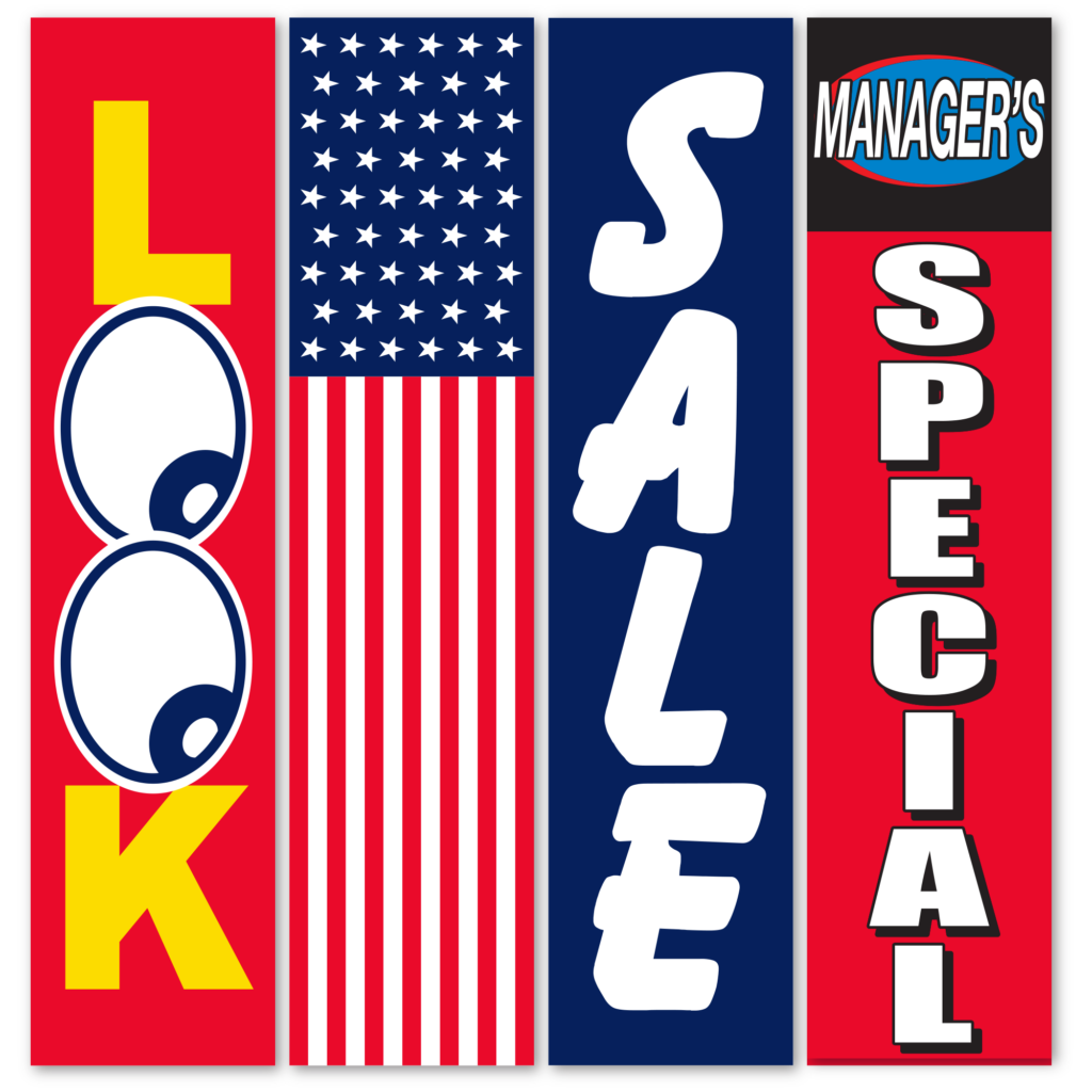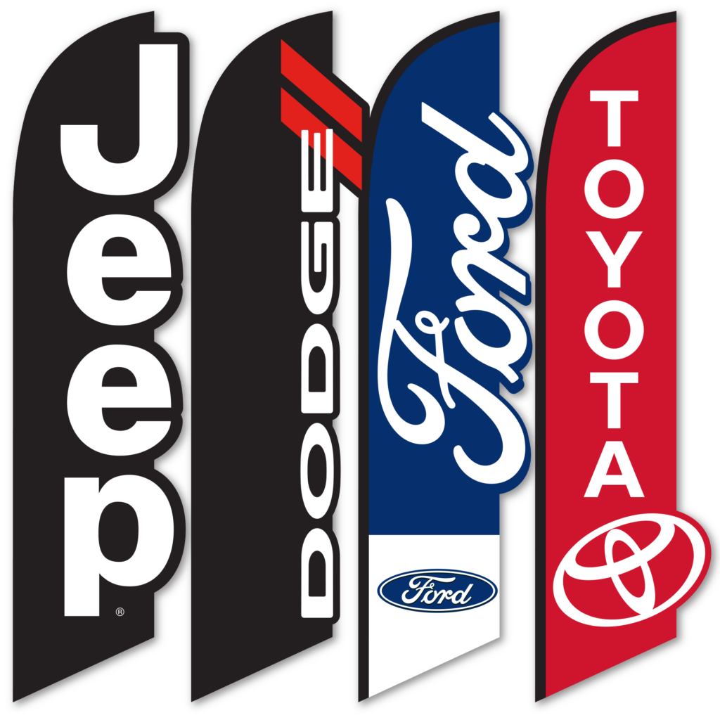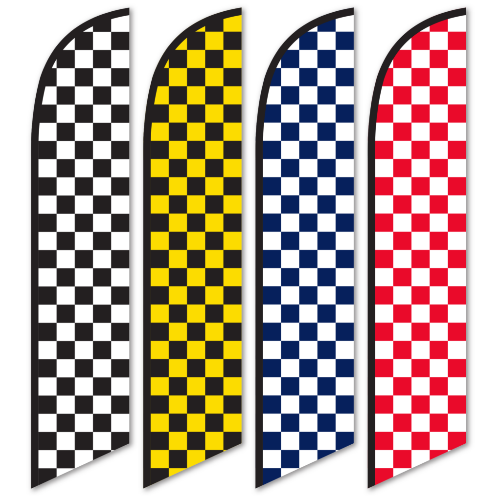 All of our flags have a sewn sleeve that fits up and over the arch of our four piece pole set. When mounted, each Swooper Flag reaches a height of over 15 feet, allowing for maximum visibility at all times. All of our stock Swooper Flags come in a wide range of colors and a variety of slogans.